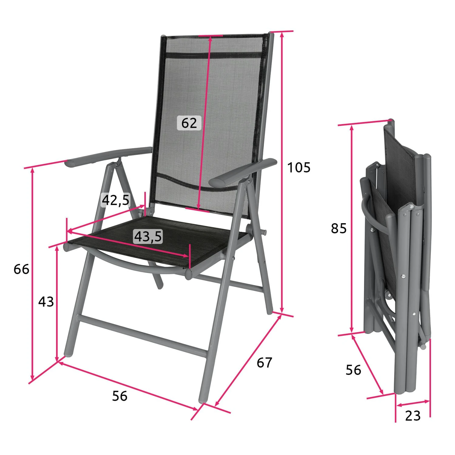 - Sitzfläche: (LxB) 43,5 x 42,5 cm