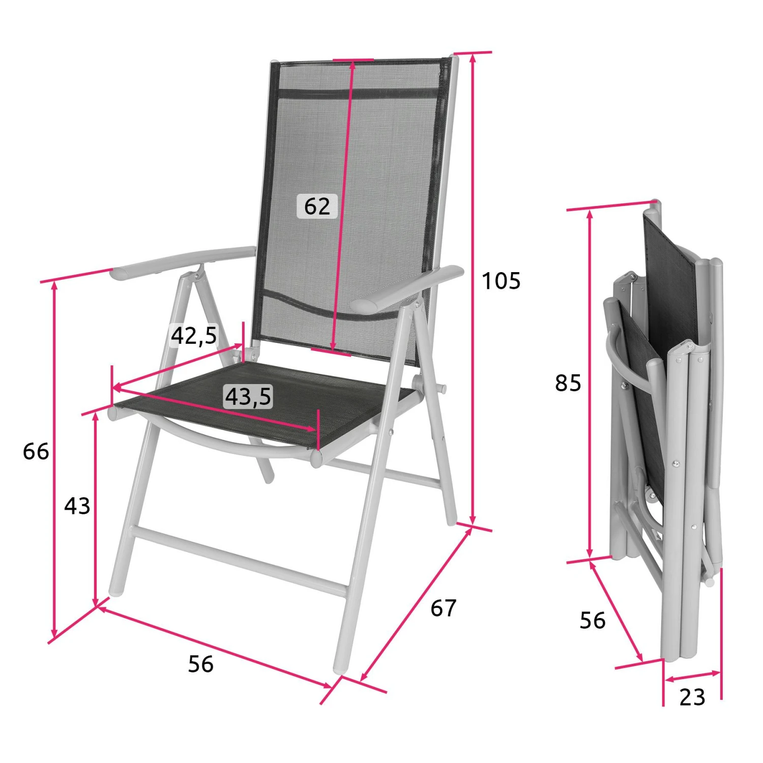 - Material: Aluminium Gestell, Kunststoffteile, Polyesterfasern mit Kunststoffummantelung