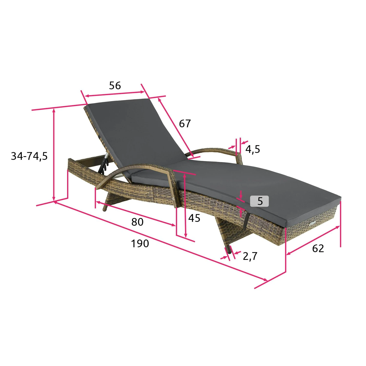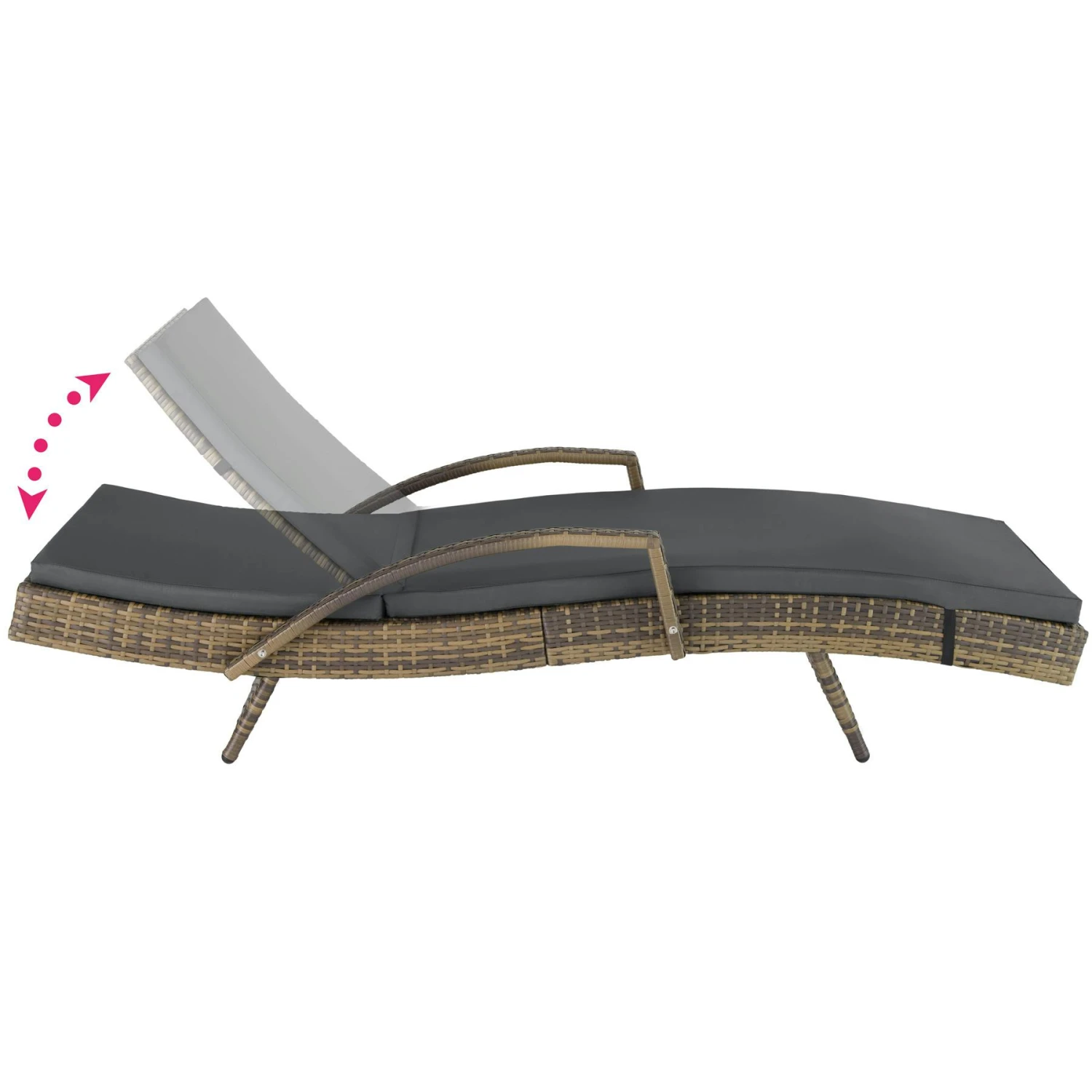 Mit der funktionalen Rattan Sonnenliege von tectake bist Du in der warmen Jahreszeit stets bestens aufgelegt. Die stilvolle und moderne Konstruktion zeichnet sich durch ihr ansprechendes Design und ihren hohen Liegekomfort aus. Der Liegestuhl verfügt über eine 5-fach verstellbare Rückenlehne, eine weiche Polsterauflage und praktische Armlehnen, so dass Du immer immer die ideale Position für maximale Entspannung findest. Das strapazierfähige Geflecht aus Polyrattan und das robuste Untergestell aus Aluminium machen diese leichte und rostfreie Gartenliege zum perfekten Outdoor-Möbel. Die anschmiegsame Sonnenliege von tectake stellt sich perfekt auf Dich ein.