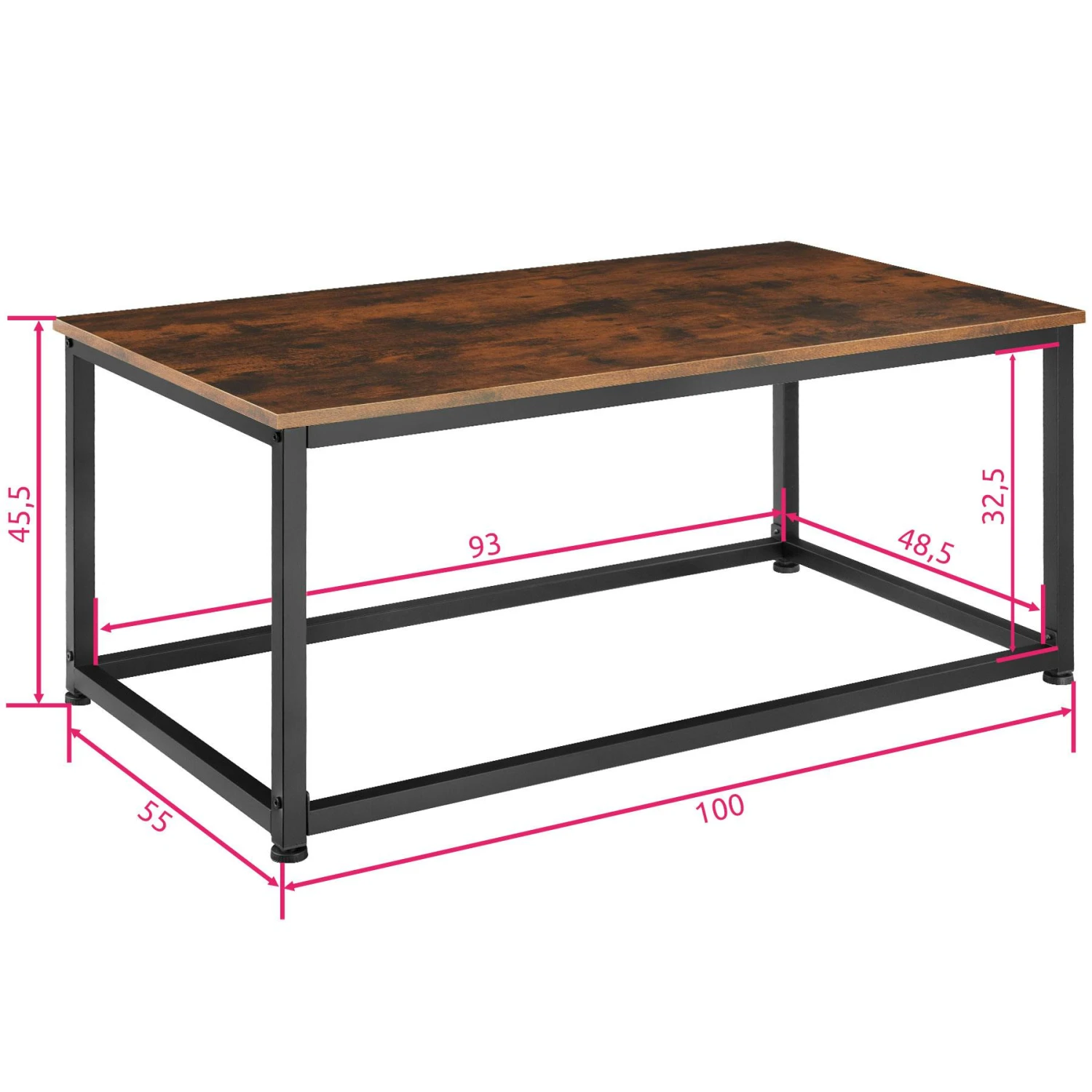 Mit dem eckigen Couchtisch Lynch von tectake bereicherst Du Dein Wohnzimmer um einen ebenso geschmackvollen wie praktischen Vertreter des angesagten Industrie-Looks. Der kühle Stahl des pulverbeschichteten Gestells ist das ideale Pendant zu der belastbaren Ablagefläche in warmer Holzoptik. Durch den konsequenten Verzicht auf unnötige Elemente kommt das Möbelstück schlank und unaufdringlich daher, wodurch es sich hervorragend kombinieren lässt. Unebenheiten gleicht der funktionale Einrichtungsgegenstand mit seinen vier verstellbaren Schraubfüßen spielend leicht aus – dezentes Design, viele Möglichkeiten: Der flexible Couchtisch Lynch von tectake.