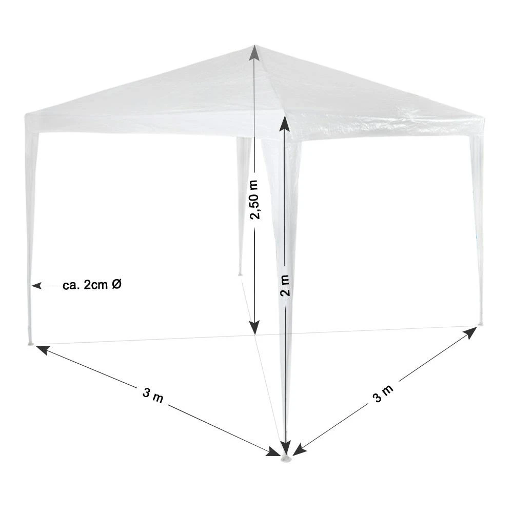 Dieser Pavillon ist der perfekte Begleiter für Festivals, Campingausflügen, Partys oder einfach nur im Garten beim Grillen. Er bietet ein schattiges Plätzchen und bei etwas schlechterer Witterung Schutz vor Nässe. Durch die Spannseile und Heringe steht das Gestell des Gartenpavillons stabil und ist innerhalb weniger Minuten komplett aufgebaut.
