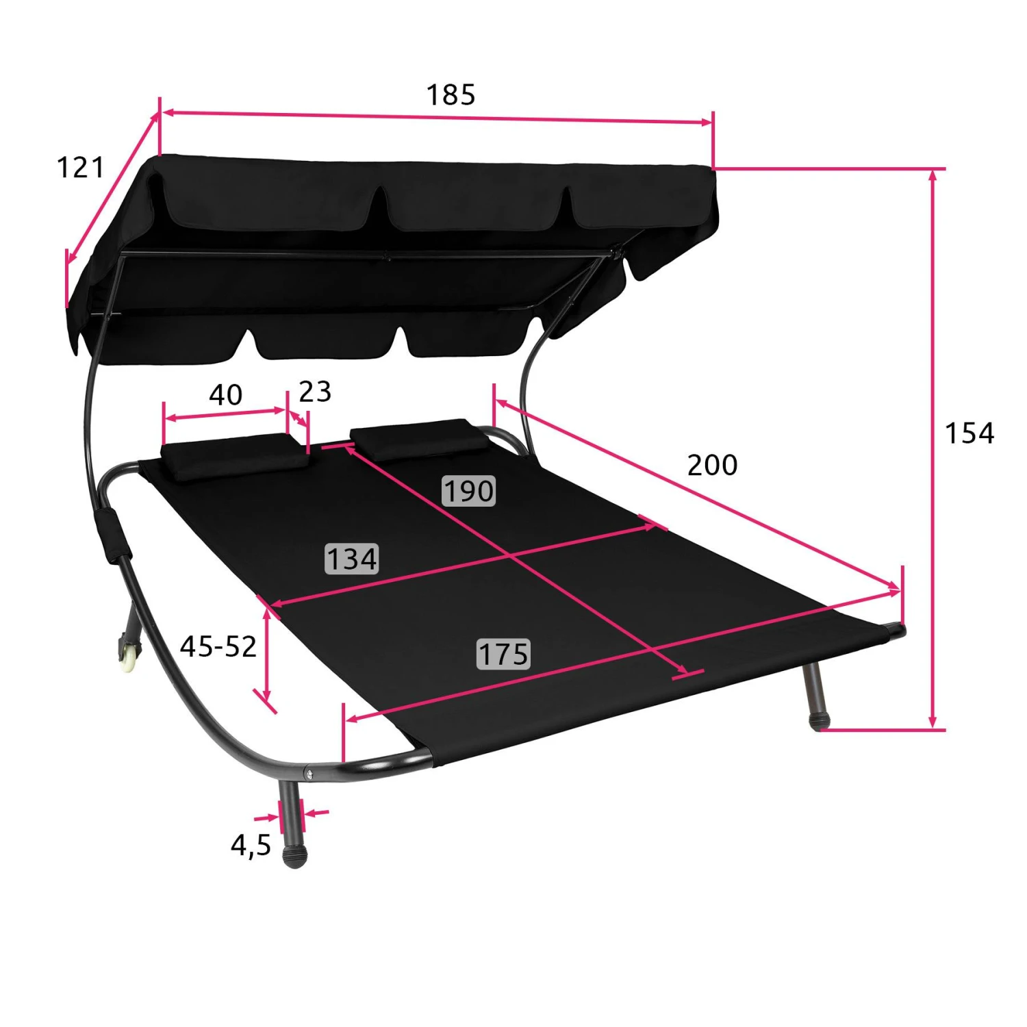 Die Luxuriöse Gartenliege für zwei Personen ist die bequemste Gelegenheit für entspannte Stunden in Deinem Garten. Egal ob Du alleine Deine Seele baumeln lässt oder zu zweit relaxt. Die Gartenliege ist für drinnen und draußen geeignet.