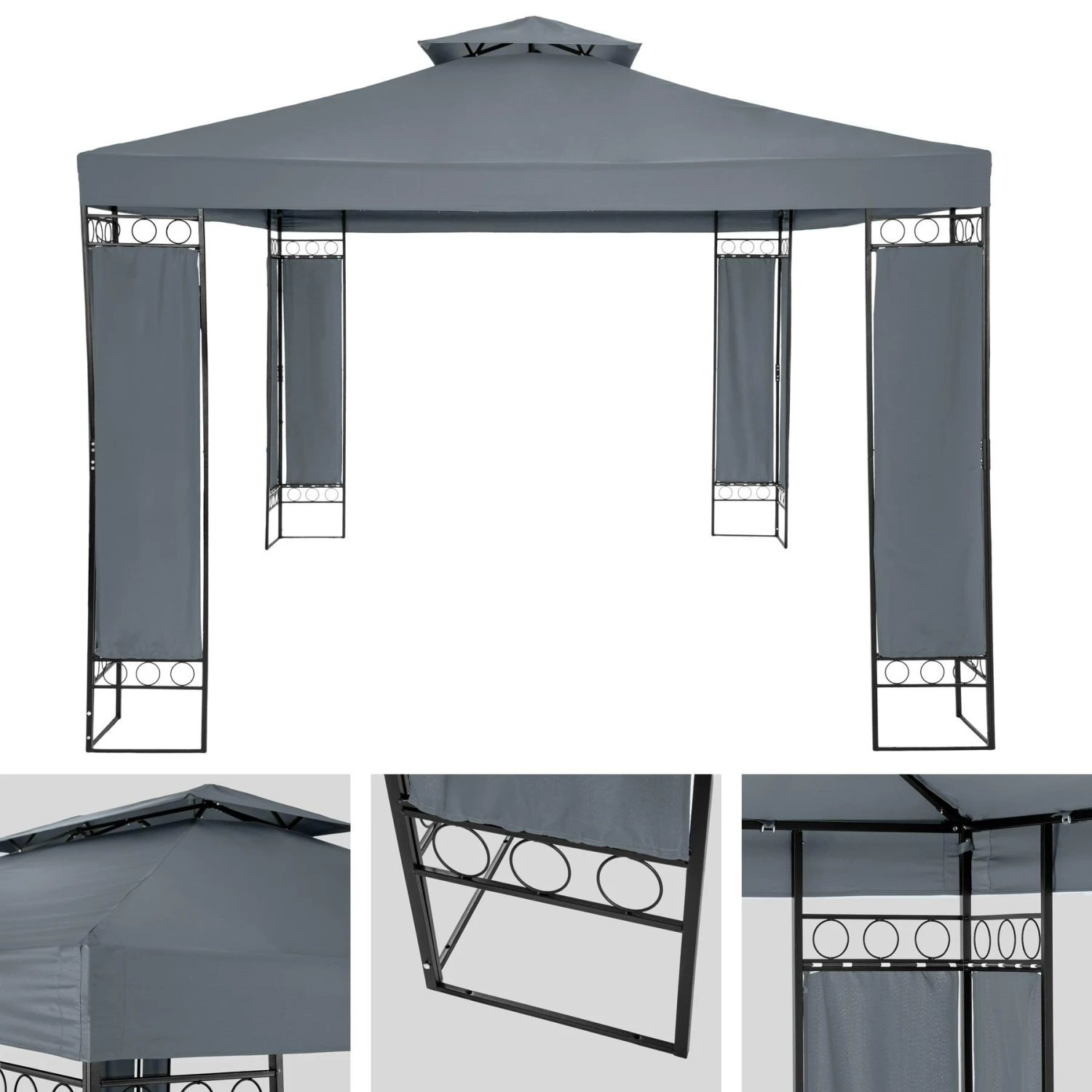 Mit diesem Garten Pavillon verwandelst Du Deinen Garten oder Deine Terrasse in eine wahre Wohlfühloase. Als Schattenspender an heißen Tagen, oder für die Gartenparty am Abend – Der Pavillon eignet sich hervorragend für jegliche Verwendung im Freien. Praktisch: Das abgesetzte Dach lässt Stauwärme optimal entweichen und frische Luft zirkulieren. Hole Dir jetzt Deinen Gartenpavillon in Deinen Garten.