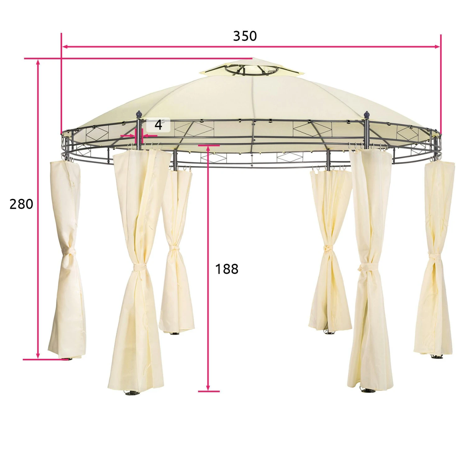- Totalmaße (Ø x H): 350 x 280 cm