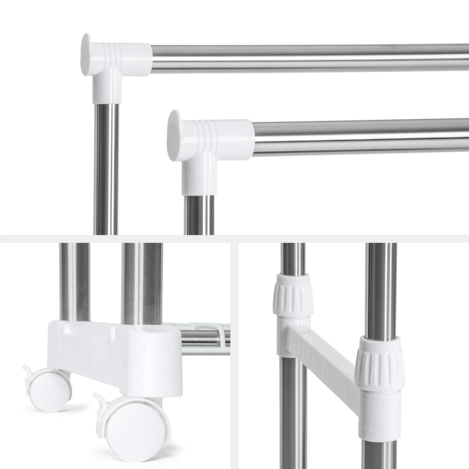 Egal ob im Schlafzimmer, Wohnzimmer, Clubraum oder im Büro macht dieser flexible Kleiderständer immer eine gute Figur. Der praktische Kleiderständer kann durch seine leicht laufenden Rollen schnell und einfach an einen passenden Ort platziert werden. Die Kleiderstange kann individuell in der Höhe verstellt werden, sodass auch besonders lange Kleidungsstücke knitter- und schmutzfrei aufbewahrt werden können. Die Montage ist mit wenigen Handgriffen blitzschnell erledigt. Schlicht und platzsparend hat der Garderobenständer das optimale Design.