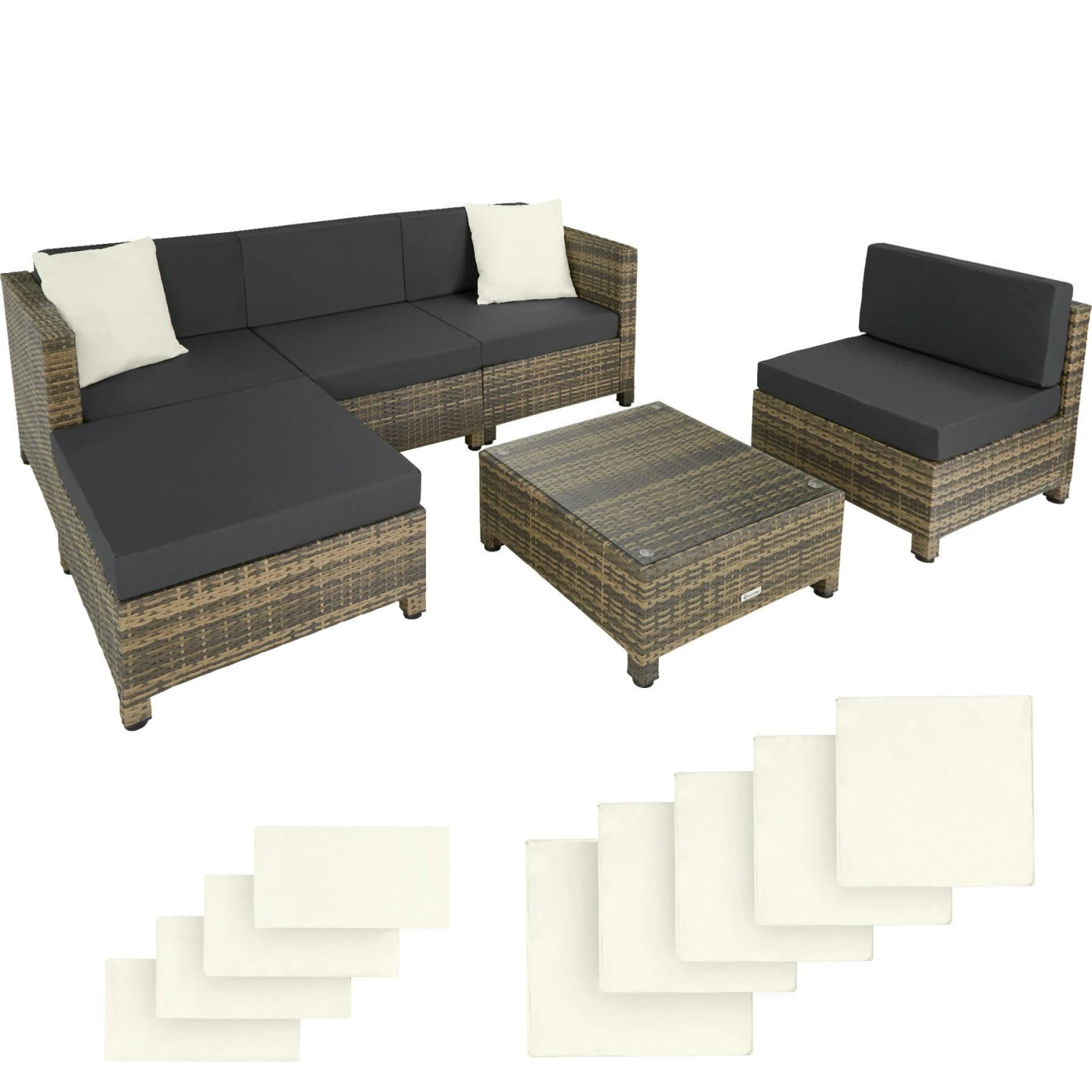 Ob auf dem Balkon, der Terrasse oder im Garten: Mit dem Rattanset Luzern von tectake lässt sich der Sommer zu Hause optimal genießen. Durch ihre kompakte Form benötigt die Sitzgruppe aus zwei Stühlen und einem kleinen Tisch mit Glasplatte nicht viel Platz und lässt sich nahezu überall aufstellen. Ihr geringes Gewicht macht sie ideal für den Transport. Einmal aufgestellt verleiht das Stahlgerüst ein Maximum an Stabilität. Die Sitzkissen aus Polyester sind farblich top auf die Rattangarnitur abgestimmt. Das schicke Set vereint hohen Sitzkomfort mit einem minimalen Pflegeaufwand. Um die Polster vor Durchfeuchtung zu schützen, ist die Oberfläche imprägniert – Schmutz und Wassertropfen perlen einfach ab. Relaxe sorgenlos noch heute in Deinem Rattanset Luzern von tectake.