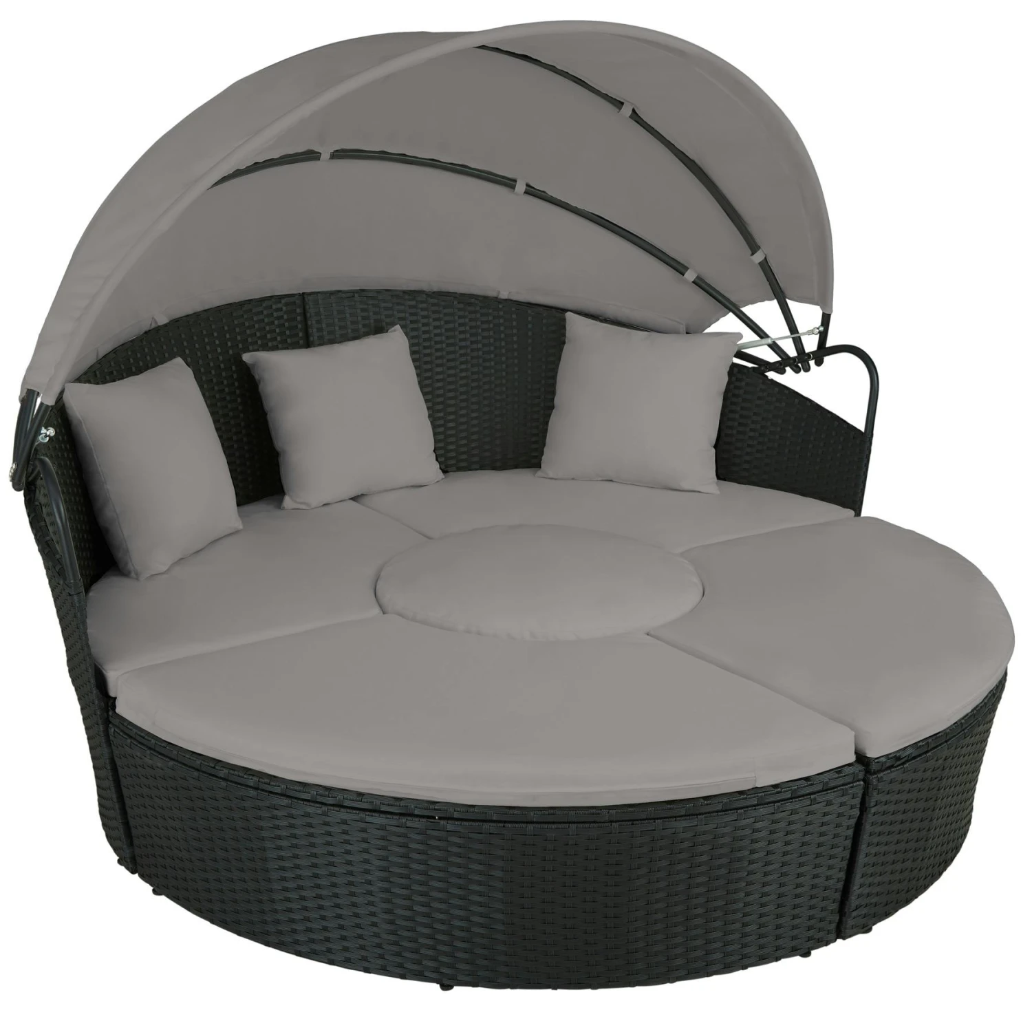 Die funktionale Rattan-Sonneninsel Santorin von tectake zeichnet sich durch ihr ansprechendes Design und ihren hohen Sitz- sowie Liegekomfort aus. Die kombinierbaren Einzelelemente mit wasserabweisenden Kissen präsentieren sich ganz nach Geschmack als mehrteilige Sitzgruppe oder als großes Lounge-Bett. Das stabile Sonnendach ist mit Klettverschluss fixiert und bietet aufgespannt Schutz vor Hitze und Wind. Das hochwertige Geflecht aus strapazierfähigem Polyrattan und das robuste Untergestell aus Stahl machen diese vielseitige Rattan-Sonneninsel Santorin von tectake zur perfekten Wohlfühloase.