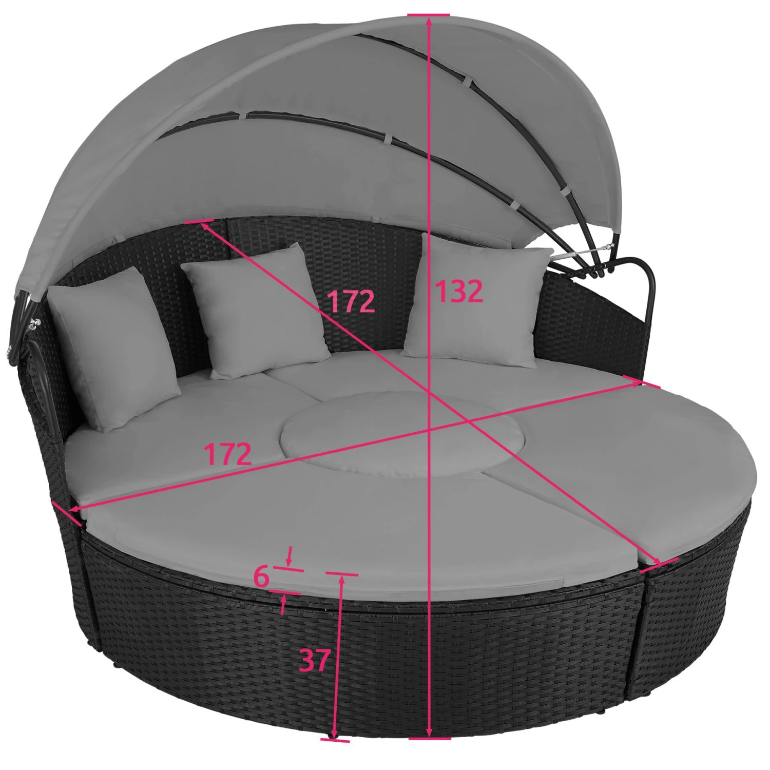 - Totalmaße (BxTxH): ca. 172 x 172 x 88 – 132 cm