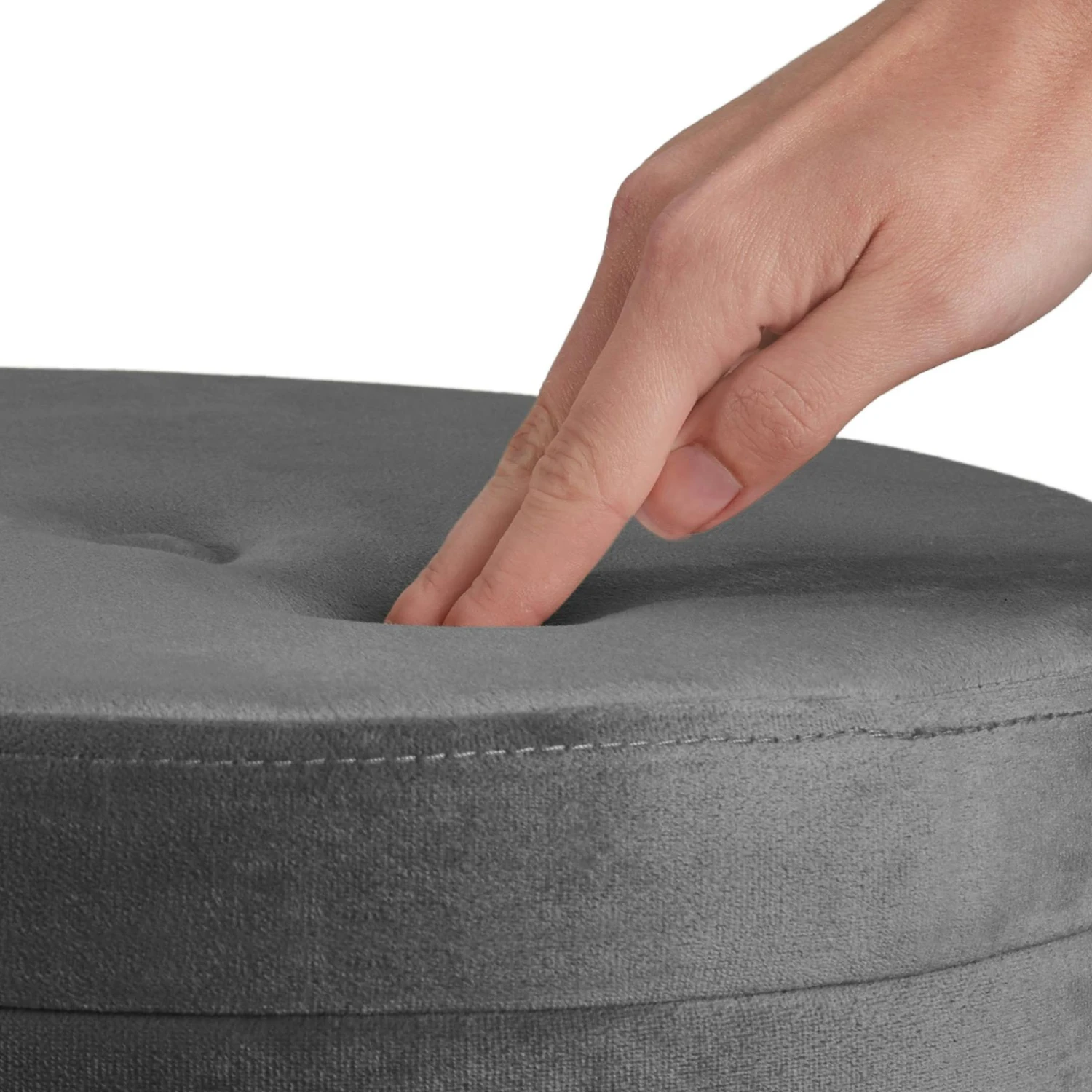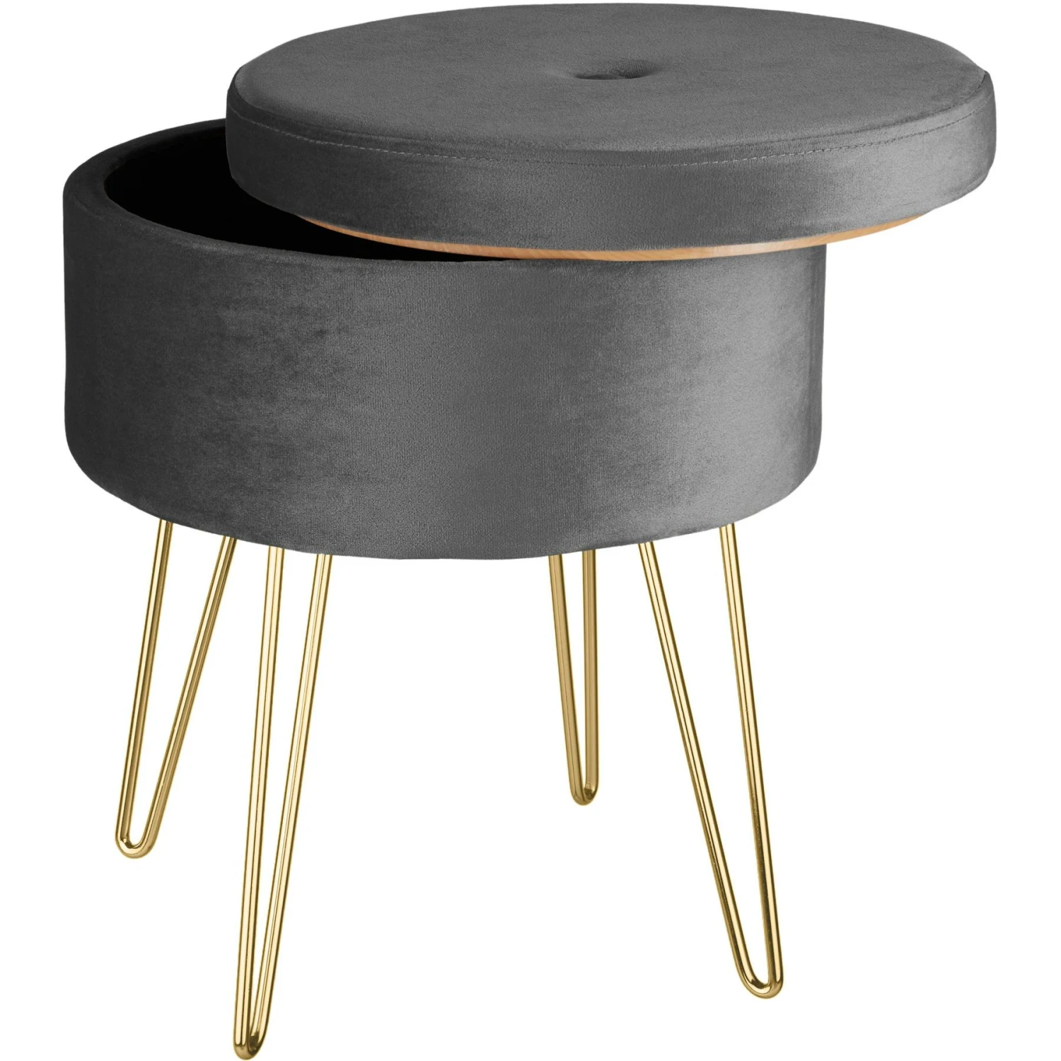 Mit dem Sitzhocker Ava von tectake sicherst Du Dir einen Eyecatcher, der mehrere Vorzüge in sich vereint. Die gute Polsterung und die Velours-Oberfläche machen das schmucke Möbelstück zu einem weichen Vergnügen. Trotz der filigranen Optik punktet die durchdachte Konstruktion mit praktischen Eigenschaften wie einer hohen Belastbarkeit und einem integrierten Aufbewahrungsfach. Dank seines ansprechenden Erscheinungsbilds findet der stilvolle Rundhocker überall Verwendung – ob vor dem Schminktisch im Schlafzimmer oder als zusätzliches Platzangebot im Wohnzimmer.