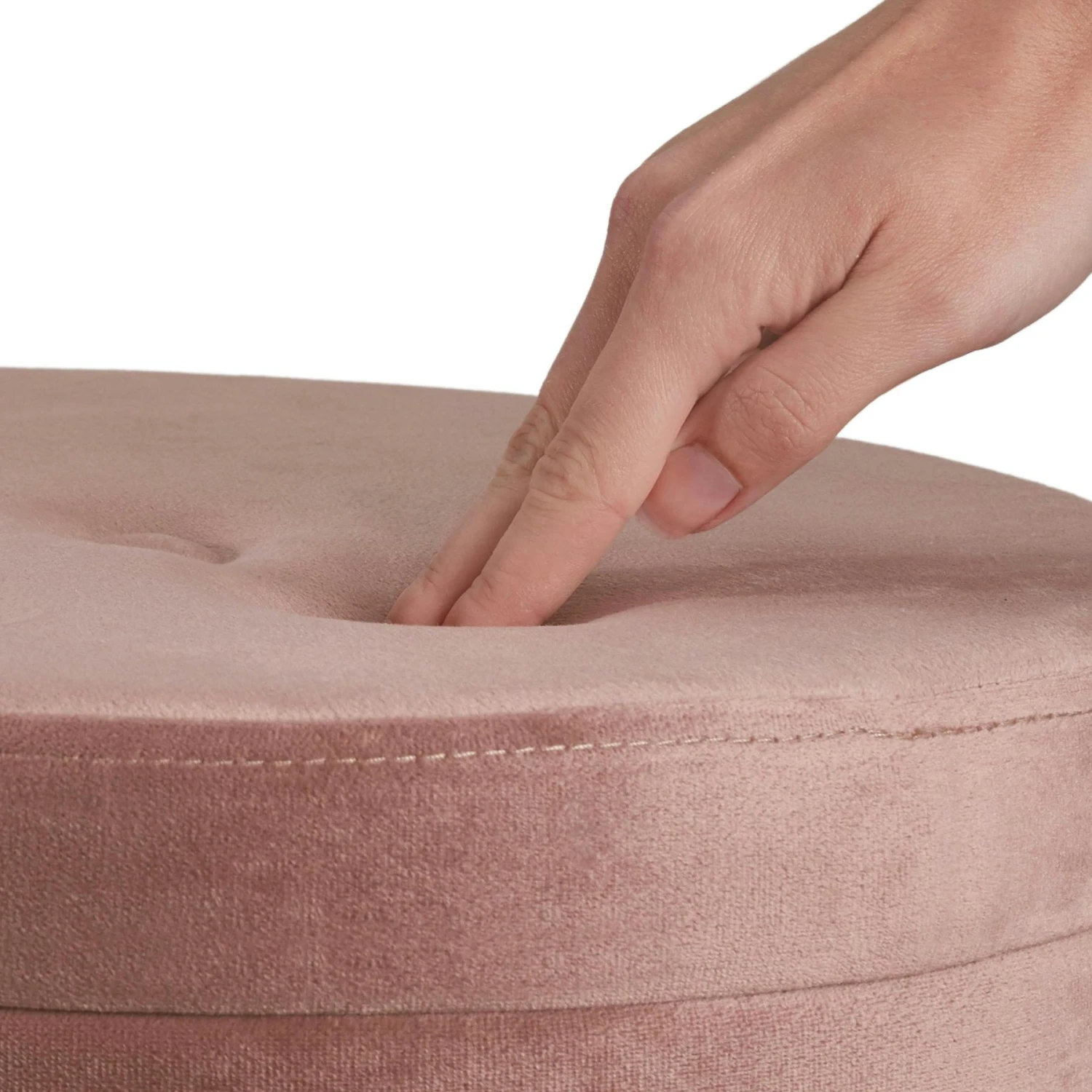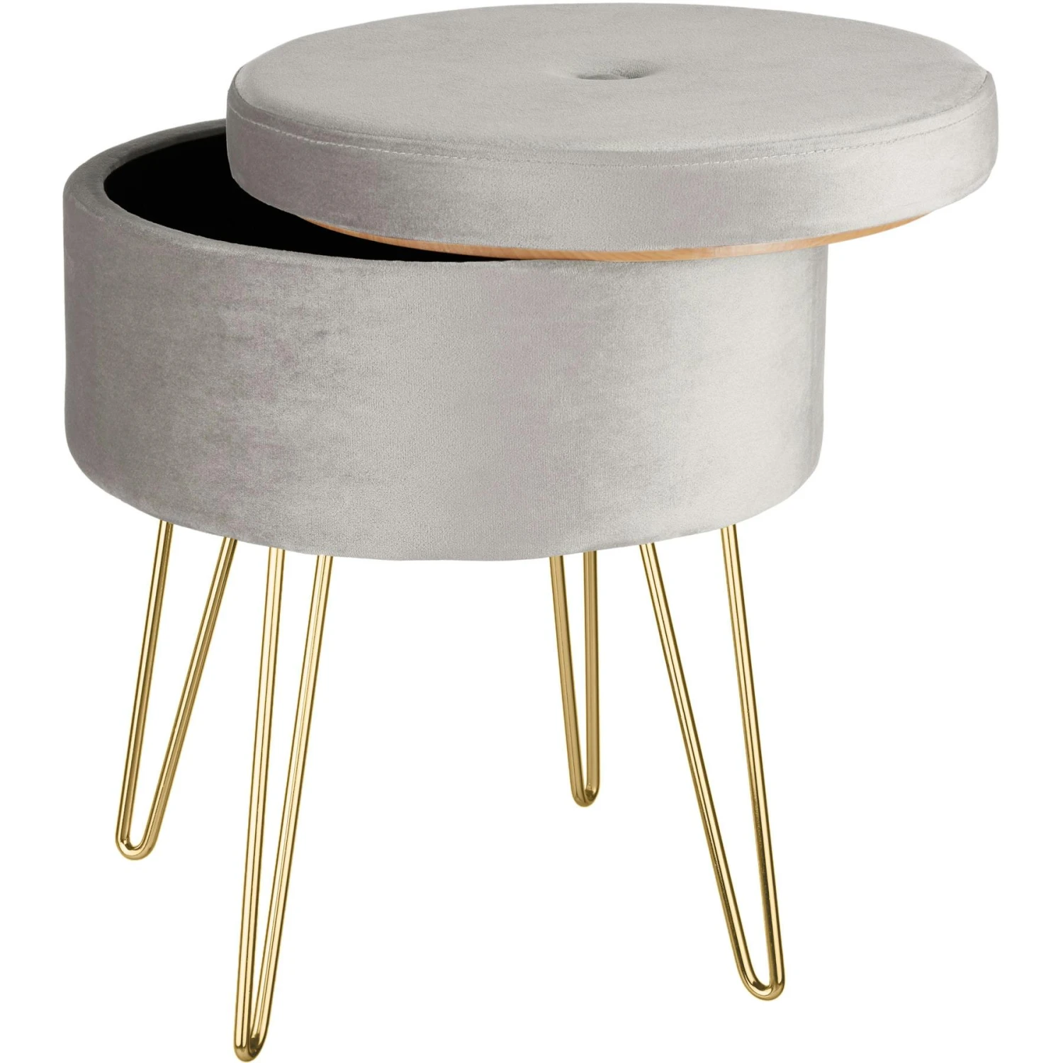Mit dem Sitzhocker Ava von tectake sicherst Du Dir einen Eyecatcher, der mehrere Vorzüge in sich vereint. Die gute Polsterung und die Velours-Oberfläche machen das schmucke Möbelstück zu einem weichen Vergnügen. Trotz der filigranen Optik punktet die durchdachte Konstruktion mit praktischen Eigenschaften wie einer hohen Belastbarkeit und einem integrierten Aufbewahrungsfach. Dank seines ansprechenden Erscheinungsbilds findet der stilvolle Rundhocker überall Verwendung – ob vor dem Schminktisch im Schlafzimmer oder als zusätzliches Platzangebot im Wohnzimmer.