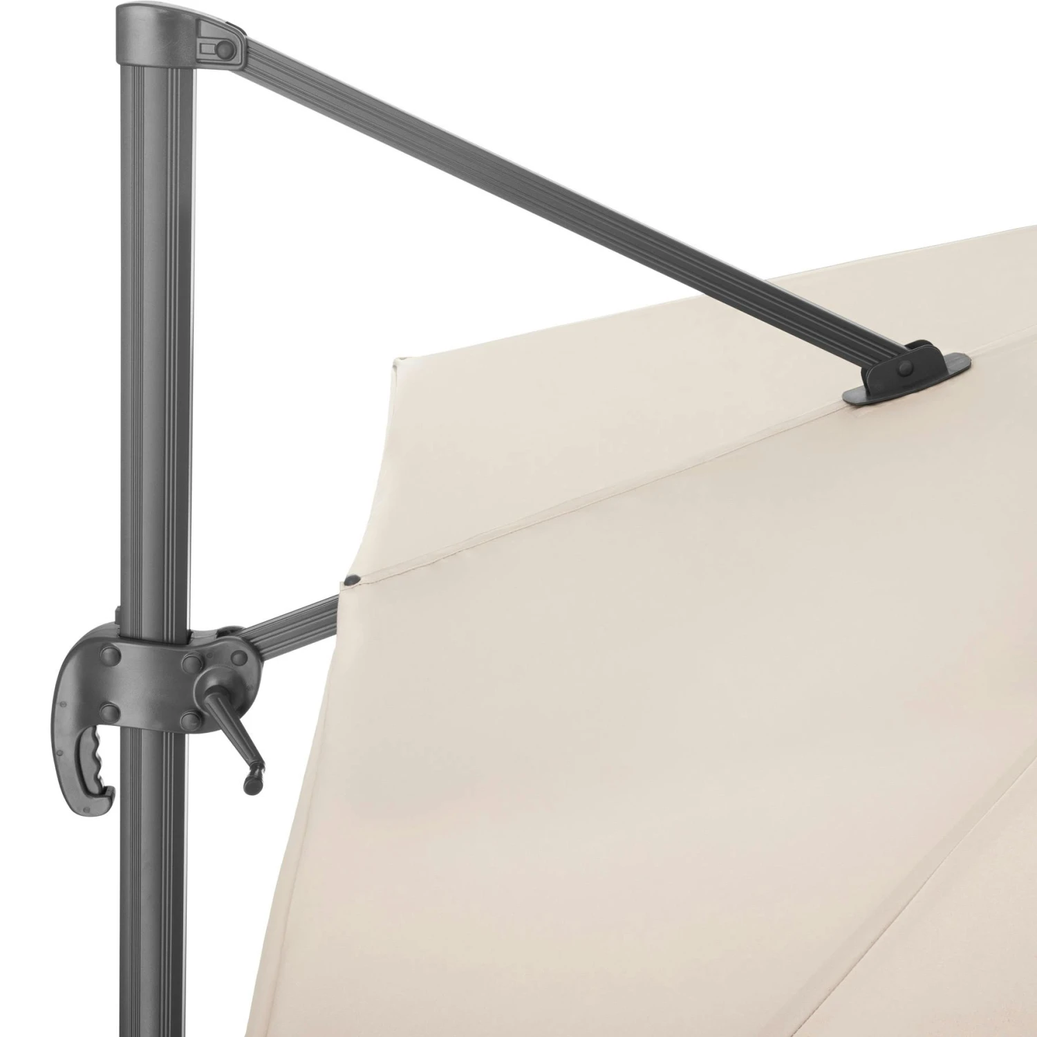 Ob auf der Terrasse, im Garten oder auf dem Balkon: Der robuste Sonnenschirm von tectake mit UV-Schutz 50+ ist der Individualist für Dein Zuhause. Dank des leichtgängigen Spann- und Klappmechanismus ist der Ampelschirm in wenigen Kurbelumdrehungen einsatzbereit. Durch den praktischen Seitenmast mit Neigefunktion und sechsfacher Höhenverstellung kann der erfrischende Schattenplatz unter dem Schirm optimal genutzt werden. Das Fußpedal ermöglicht eine vollständige Drehung um die eigene Achse. Das kleine Winddach um die Spitze erhöht die Luftzirkulation und schwächt die Windangriffskraft ab. Einfach ein trendiger Hingucker: Der flexible Sonnenschirm von tectake.