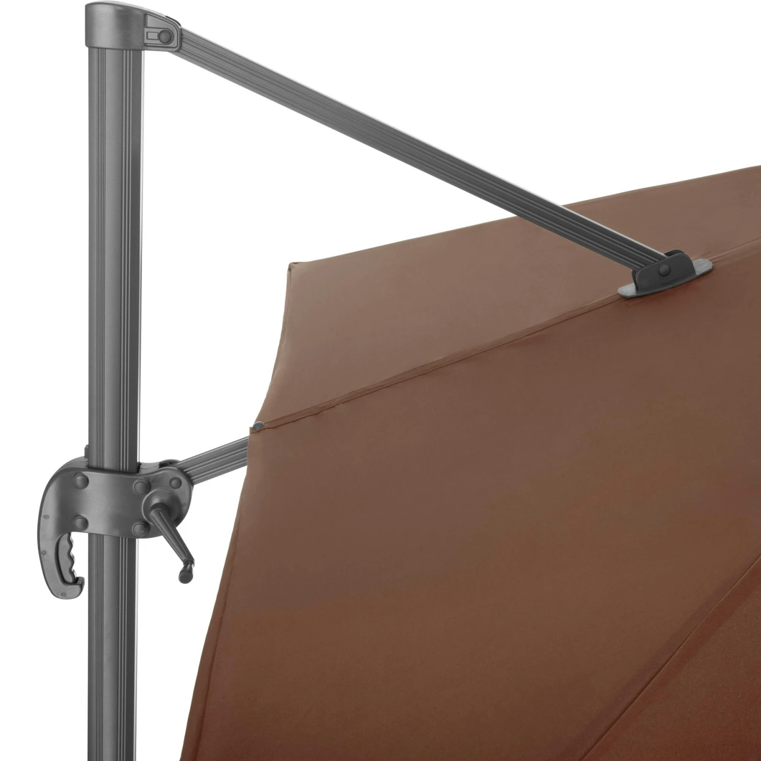 Ob auf der Terrasse, im Garten oder auf dem Balkon: Der robuste Sonnenschirm von tectake mit UV-Schutz 50+ ist der Individualist für Dein Zuhause. Dank des leichtgängigen Spann- und Klappmechanismus ist der Ampelschirm in wenigen Kurbelumdrehungen einsatzbereit. Durch den praktischen Seitenmast mit Neigefunktion und sechsfacher Höhenverstellung kann der erfrischende Schattenplatz unter dem Schirm optimal genutzt werden. Das Fußpedal ermöglicht eine vollständige Drehung um die eigene Achse. Das kleine Winddach um die Spitze erhöht die Luftzirkulation und schwächt die Windangriffskraft ab. Einfach ein trendiger Hingucker: Der flexible Sonnenschirm von tectake.