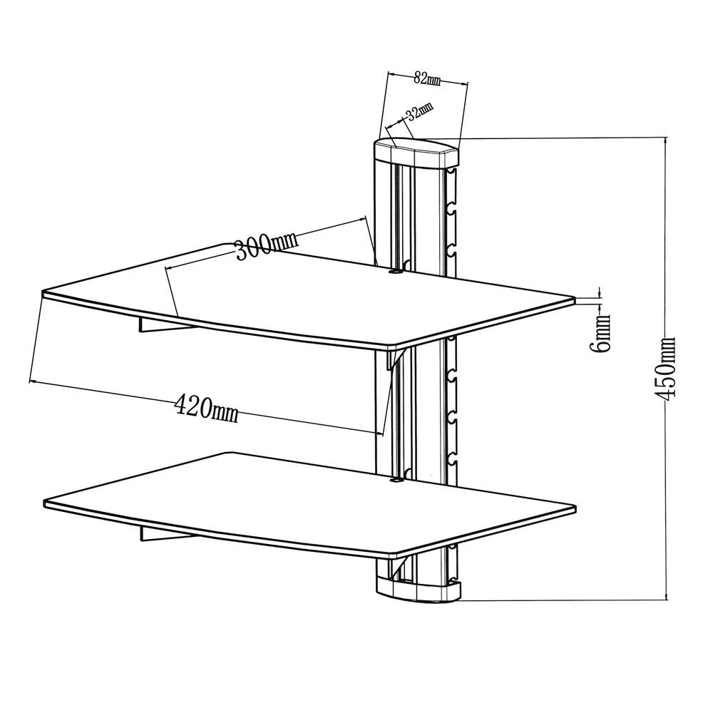 Die höhenverstellbare Ablage aus stabilem Sicherheitsglas ist eine elegante Lösung für Deine Filme, Fernbedienungen, Soundboxen und TV-Entertainment-Geräte. Das formschöne Wandregal von tectake bietet nicht nur platzsparenden Stauraum, sondern ist ein echter Hingucker im eigenen Wohnzimmer. Dank der integrierten Kabelführung gehören störende Kabel der Vergangenheit an. Die Montage ist schnell und einfach und an jeder Wand möglich. Gestalte Deine TV-Umgebung ganz nach Deinen Vorstellungen mit dem Wandregal von tectake.